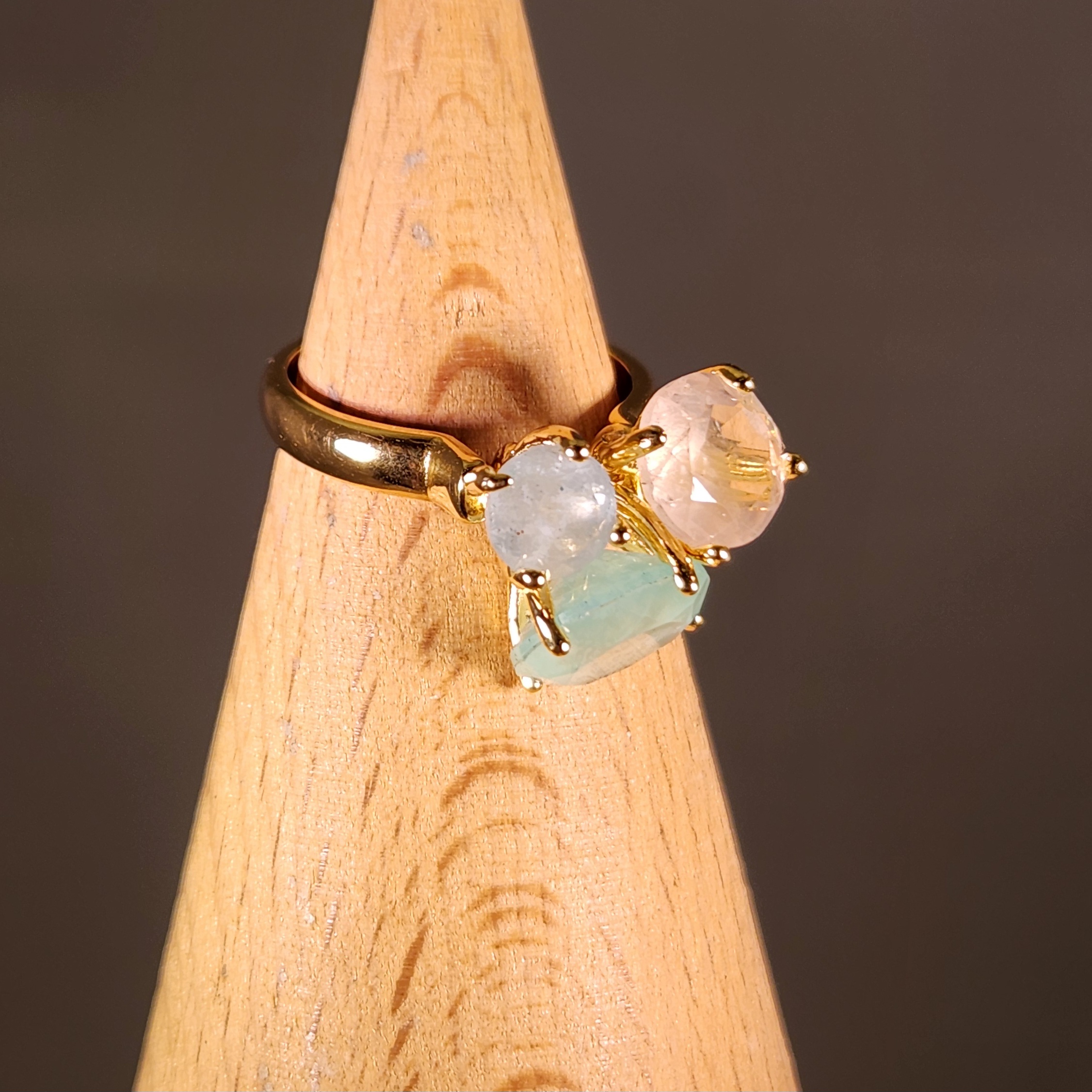 アクア、ローズクオーツ、アマゾナイトで出来たお洒落重視のリング