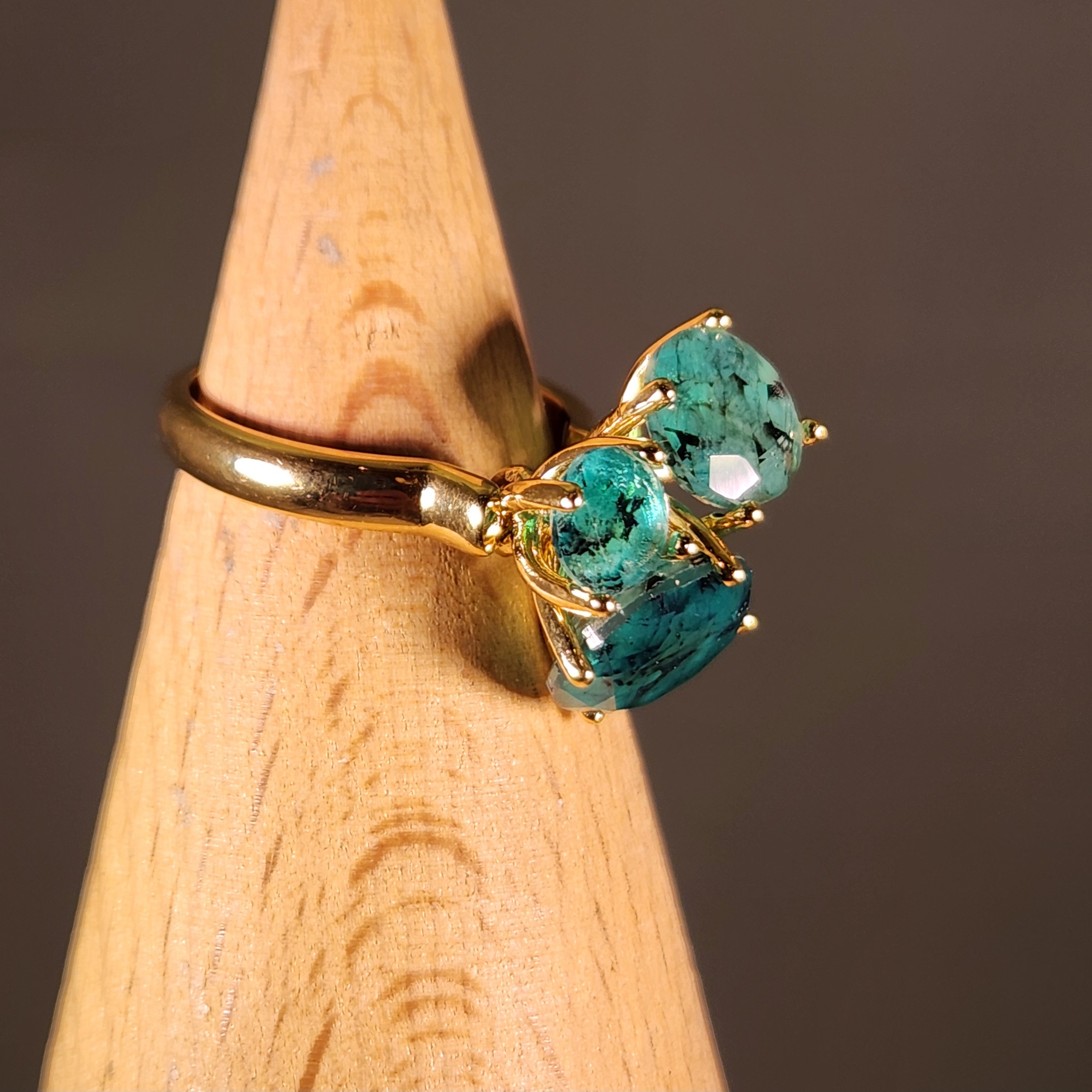 エメラルドを3石使用したリング