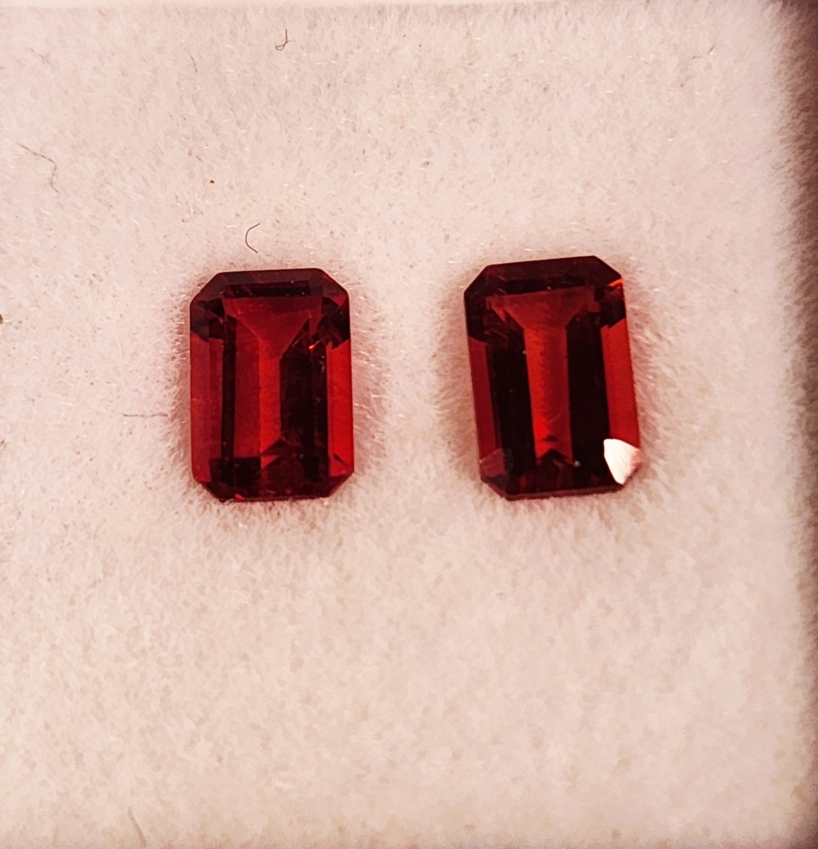 アンデシンの赤はオレンジ掛かった美しい朱色です。通常はオーバルカットが多いいですが今回は珍しくエメラルドカットのペアです。2pc-1.05ct/¥55.000