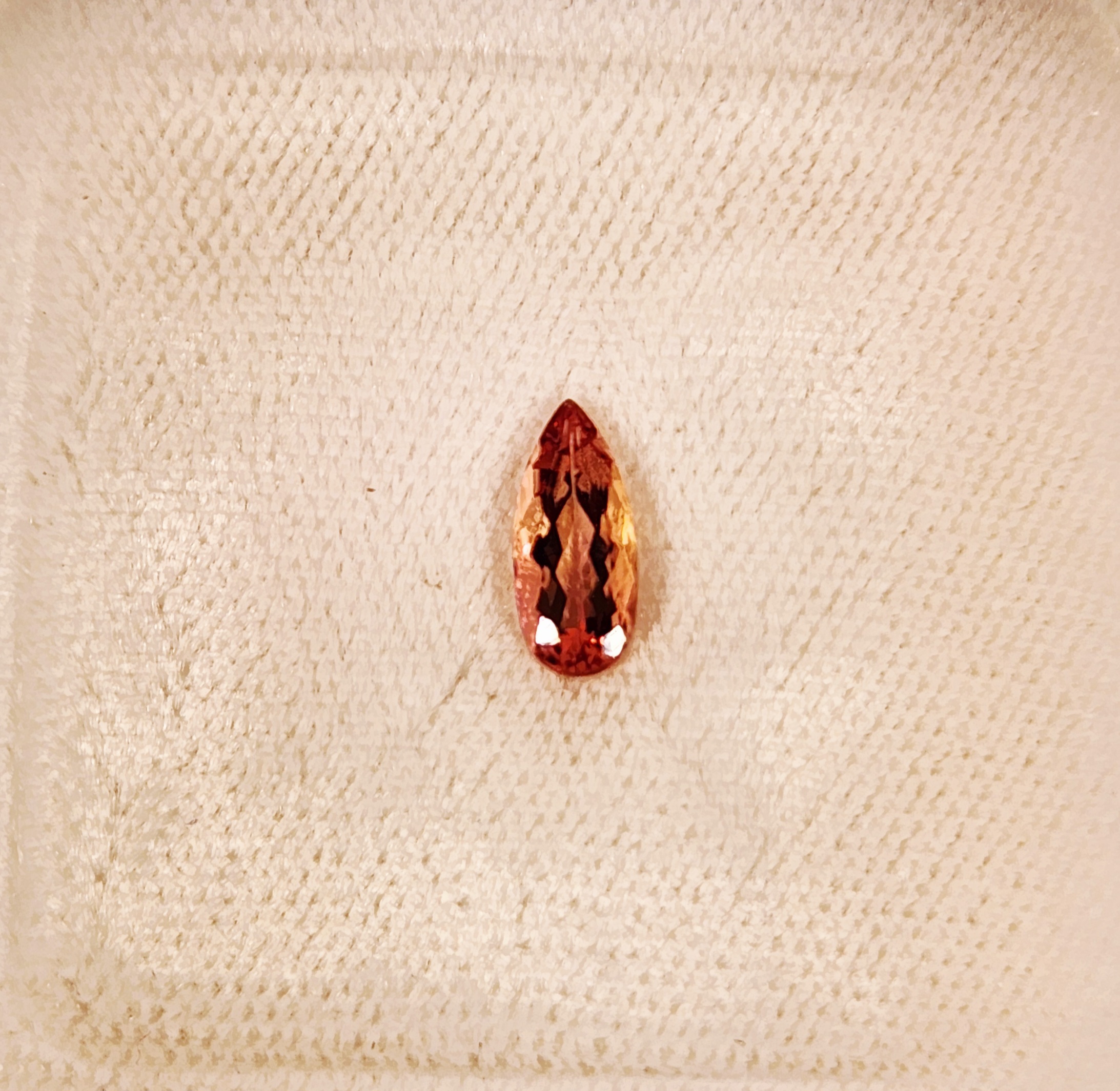 世界中でも唯一産出のあるブラジルオーロプレト鉱山からのサーモンピンクのインペリアルトパーズです。世界7大宝石の一つにも数えられる希少な貴石です。