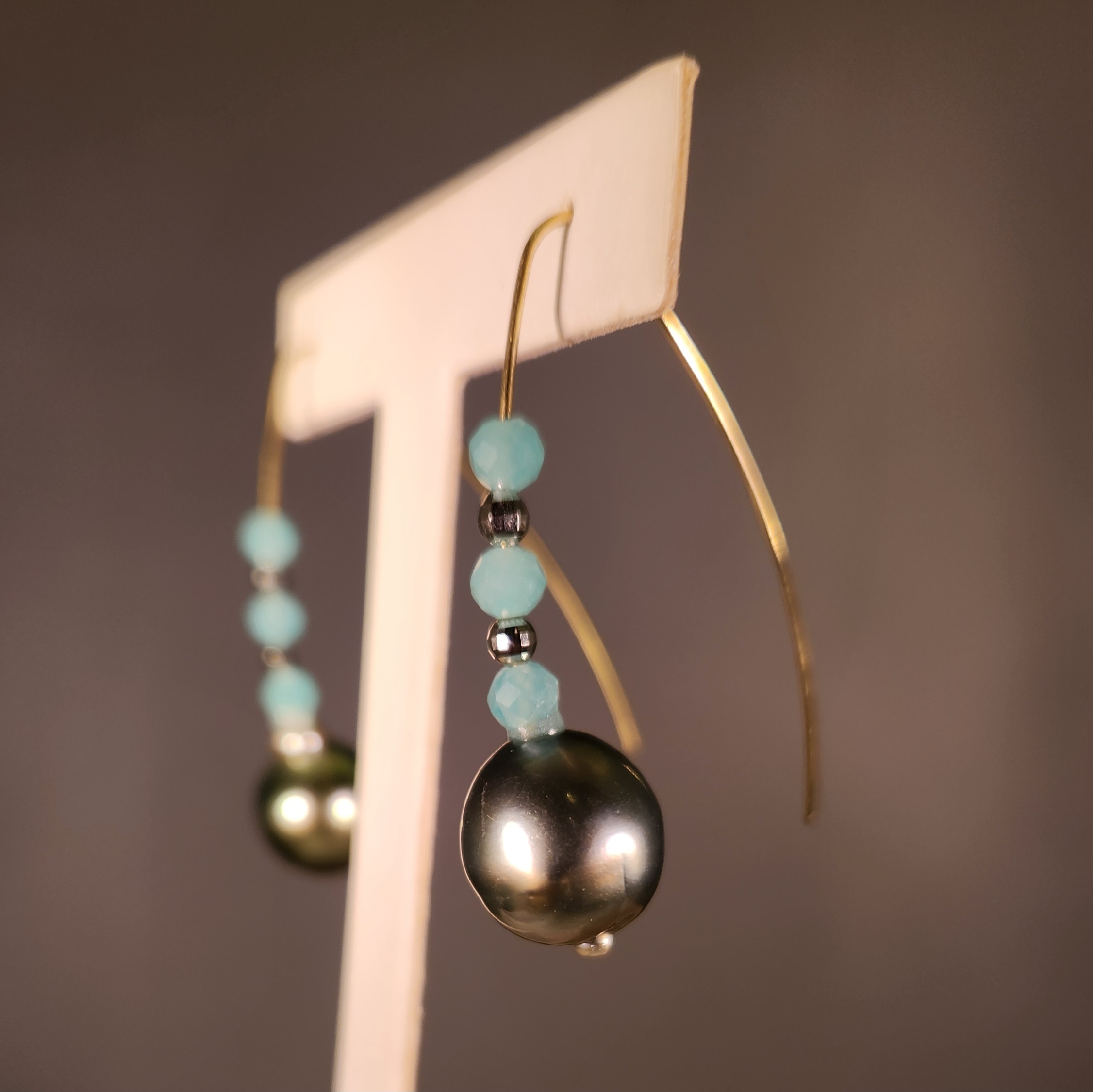 人気のクリソプレーズを6石も使用したモダンデザインのピアス