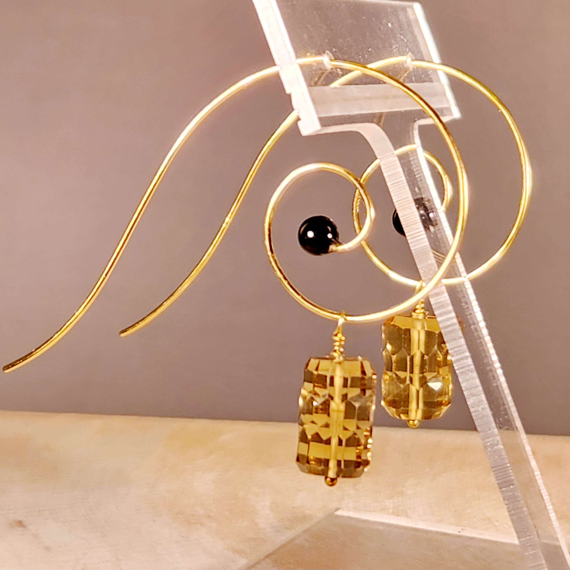 人気のルチルクオーツを4石も使用したピアスはボリューミーでも肌に良く馴染み大変使い勝手が良い石です