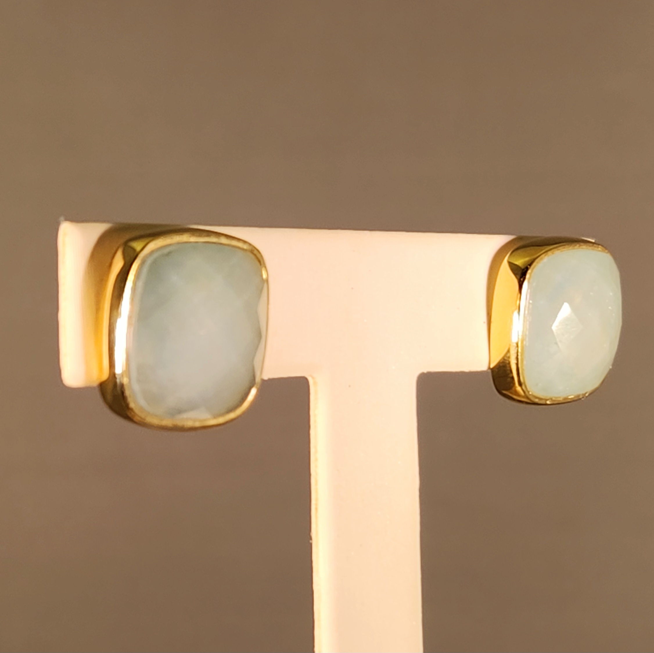 白濁した半透明なミルキーなアクアを使用したピアスは使いやすいカラー 16x16mm ブラス+k18p