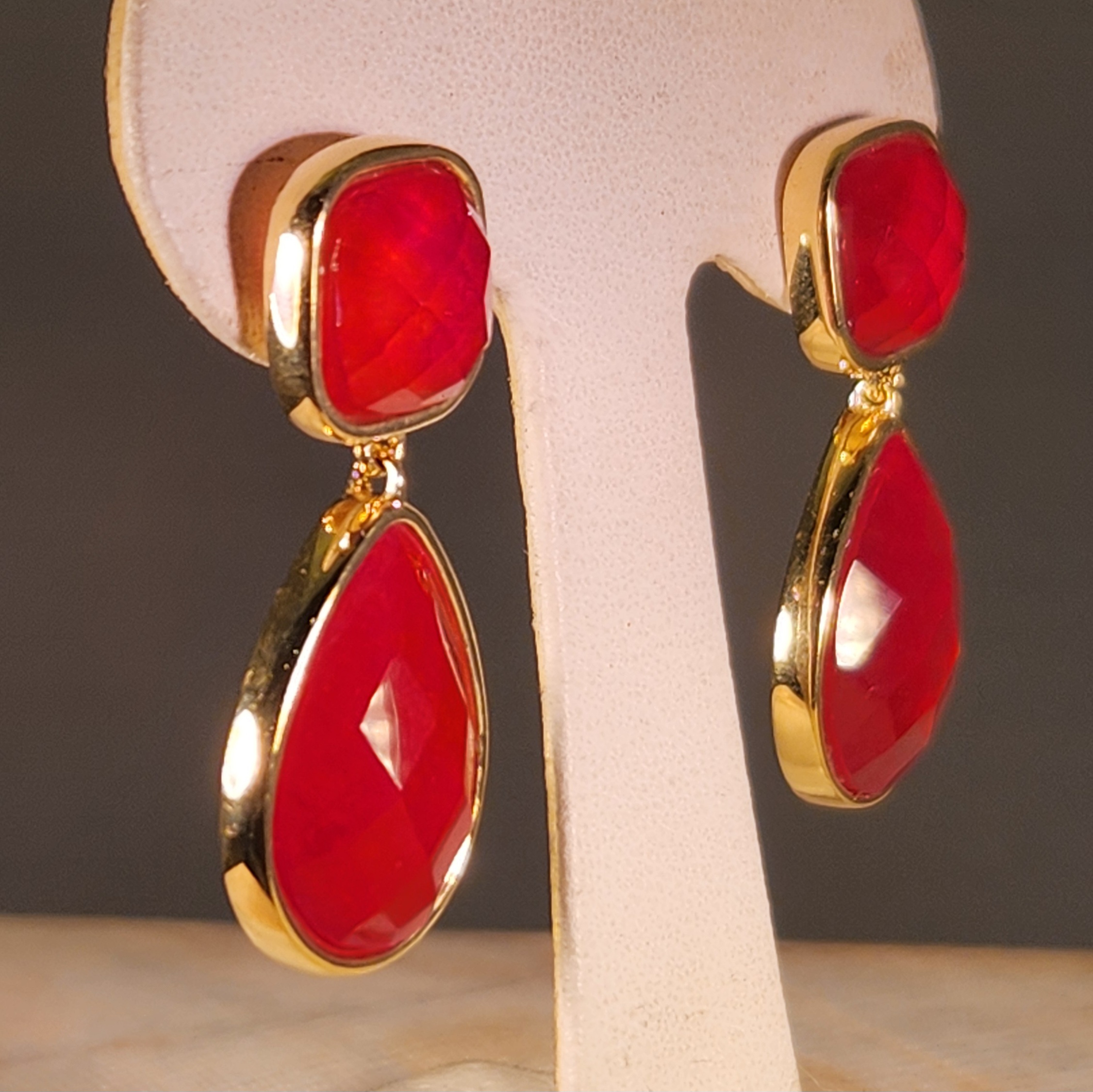 人気の赤翡翠(ドロマイトを加工したものです)こちらは4石の石が使われています。 表面はカボションにカットが入ったタイプになります。 16x36mm