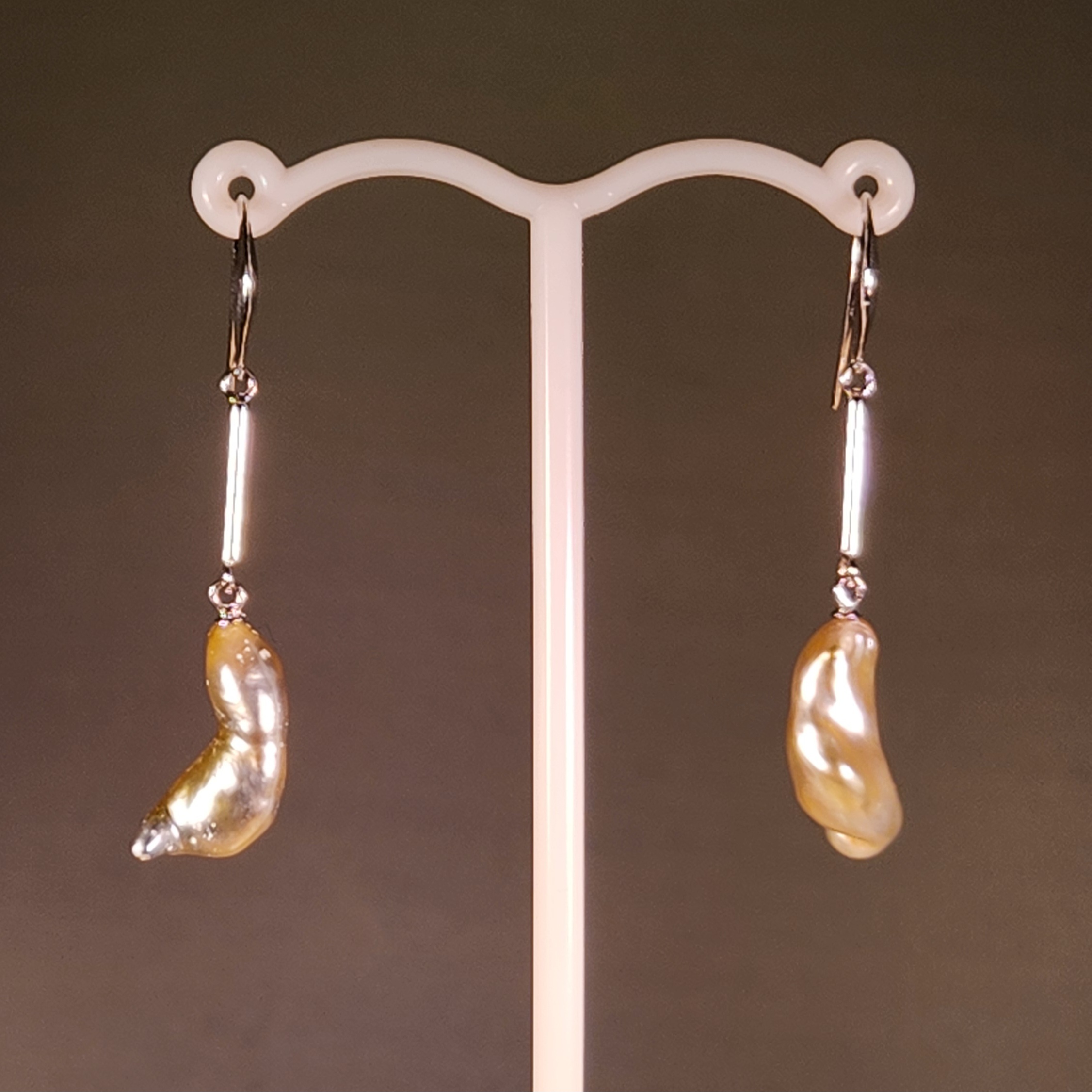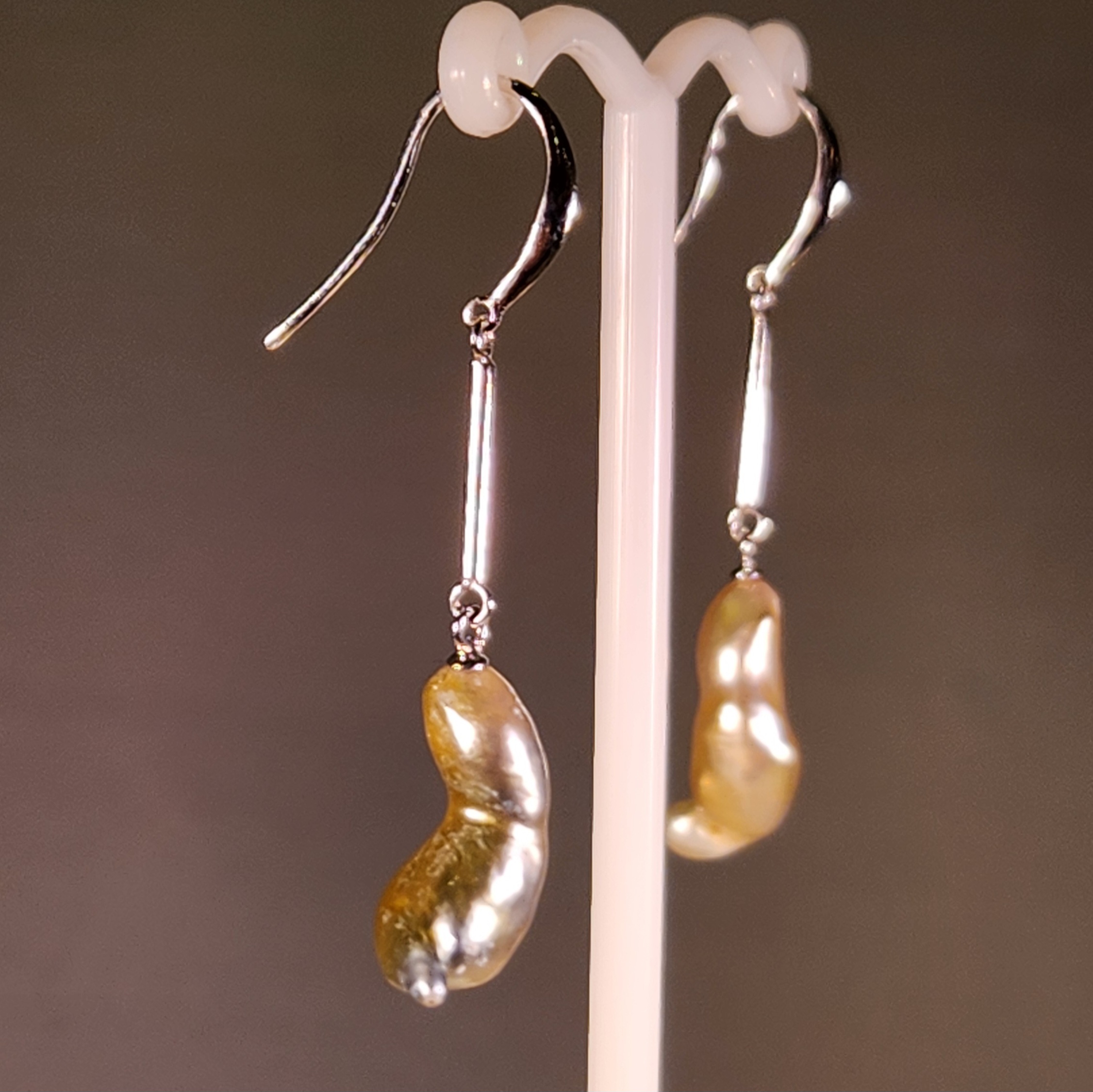 当店でも人気のエンゼルパールとは南洋真珠の母貝の中に砂や不純物が入り偶然出来た天然のアート作品です その歪なフォルムには不思議な魅力があり唯一無二の存在 今回はK14WG/PTで仕上げています。