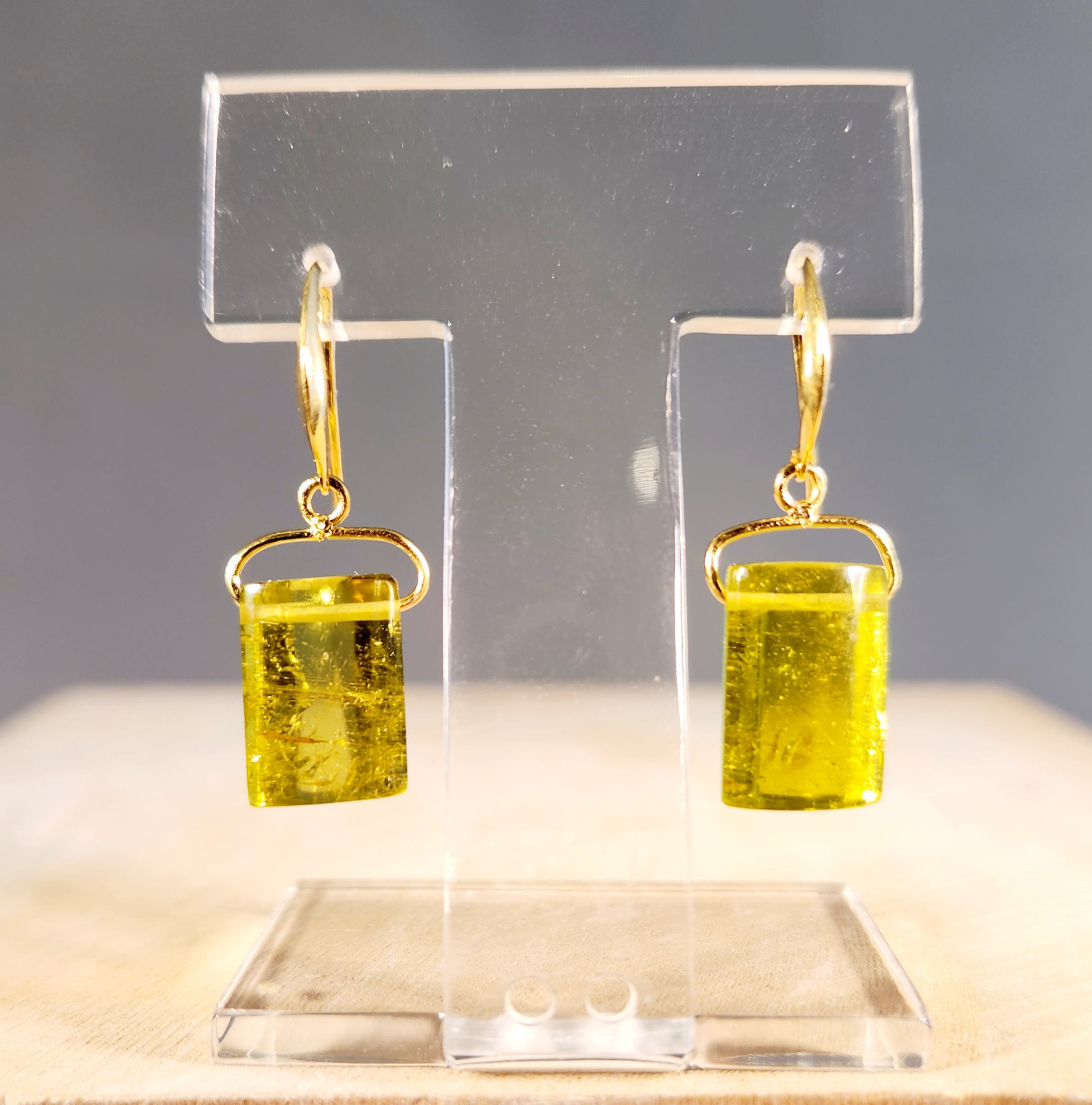 K18で制作したアメリカンピアス 通常困難とされる貫通した小さな穴を利用して地金最小限で制作致しました。 ライムグリーンの色合いも大変レアなアフリカ産トルマリンです