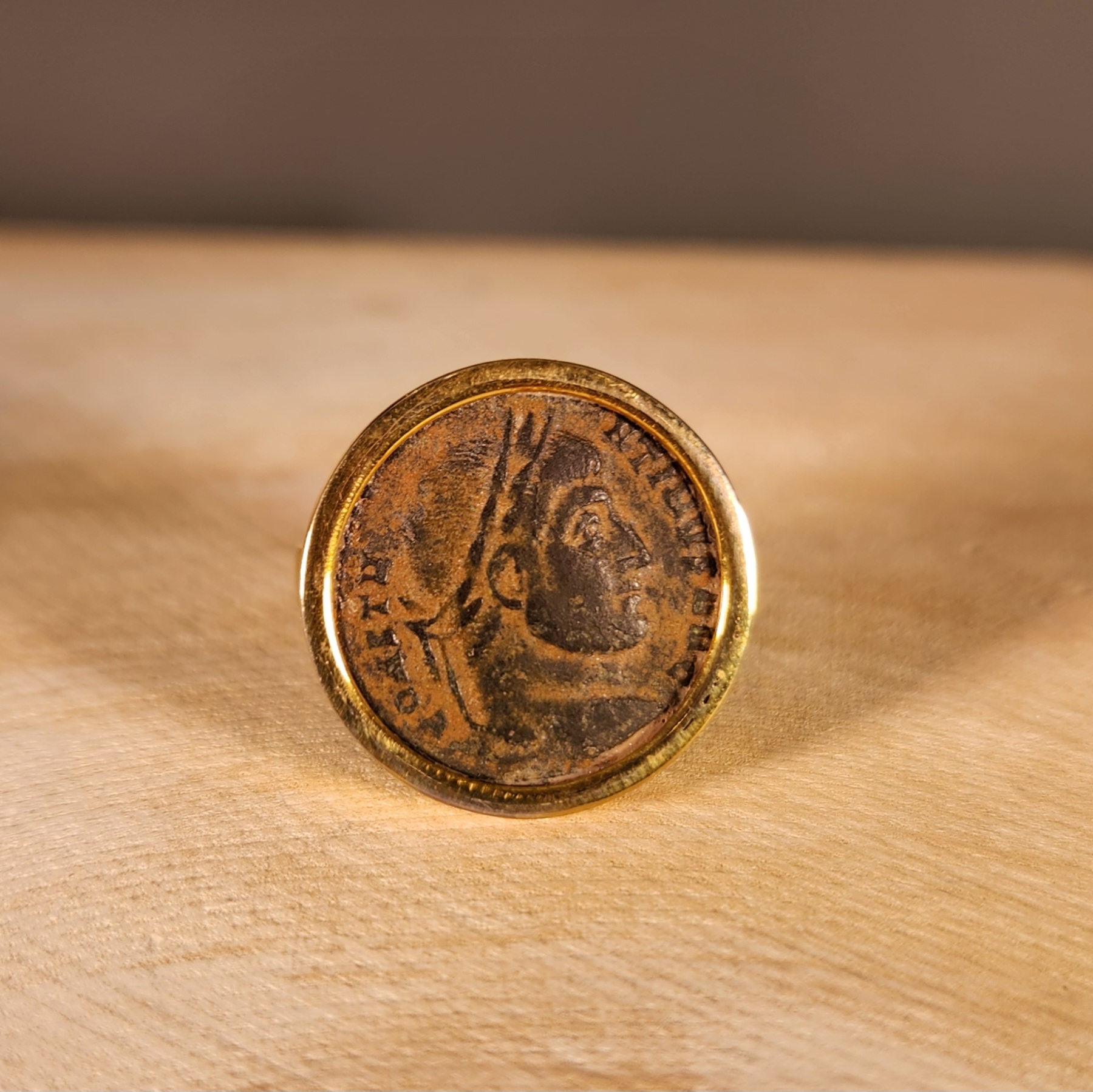 シルバーで加工した一品もののリング サンパウロのアンティーク市で見つけた大変希少な物 古代ローマ帝国のコンスタンティンの横顔が彫られています。 (2世紀頃のコイン)直径20mm