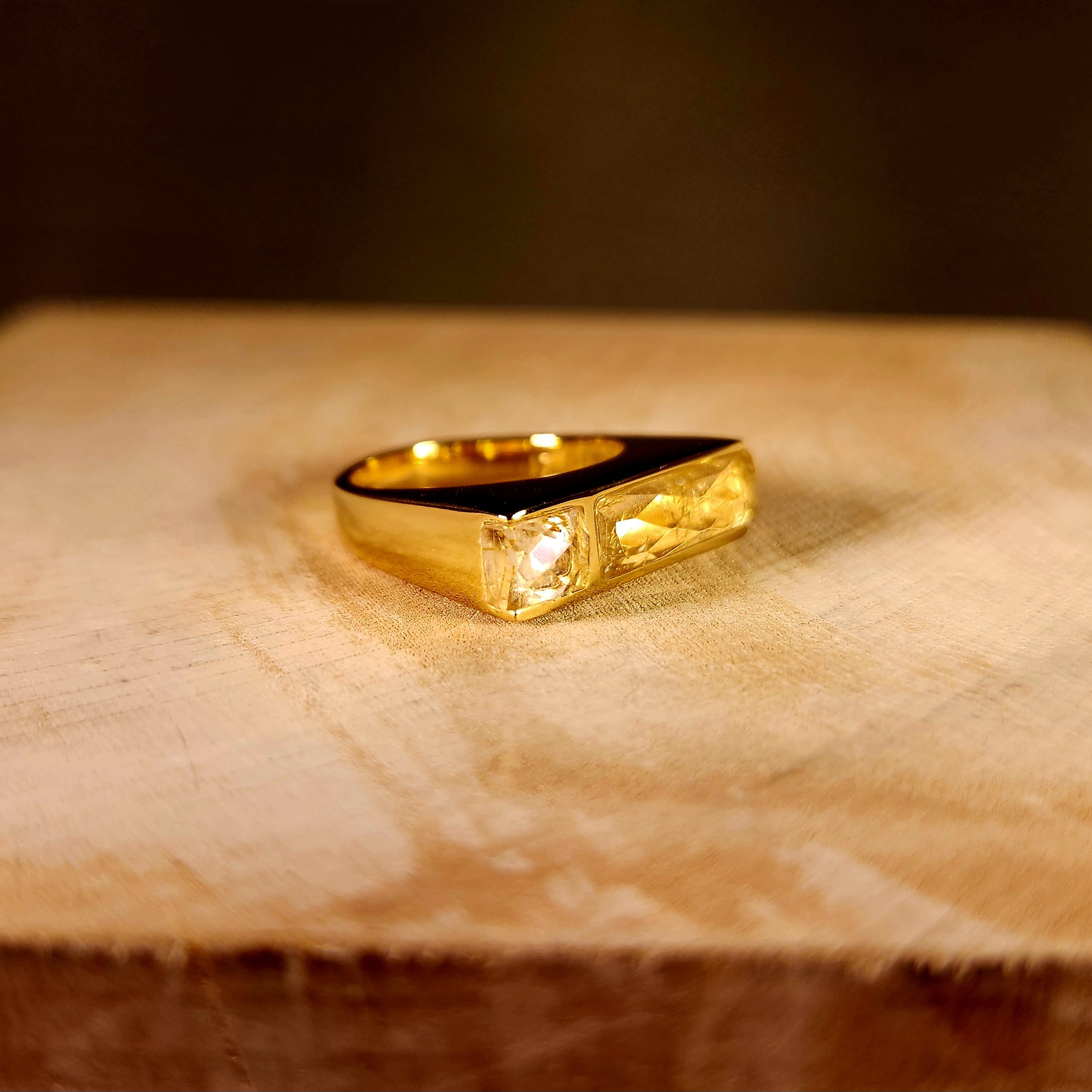 人気のカラーストンのルチルを使用した都会的なデザインリング、レール状のデザインに2つの石がセットされています。 ルチルは風水上でも金運の石として人気があります。