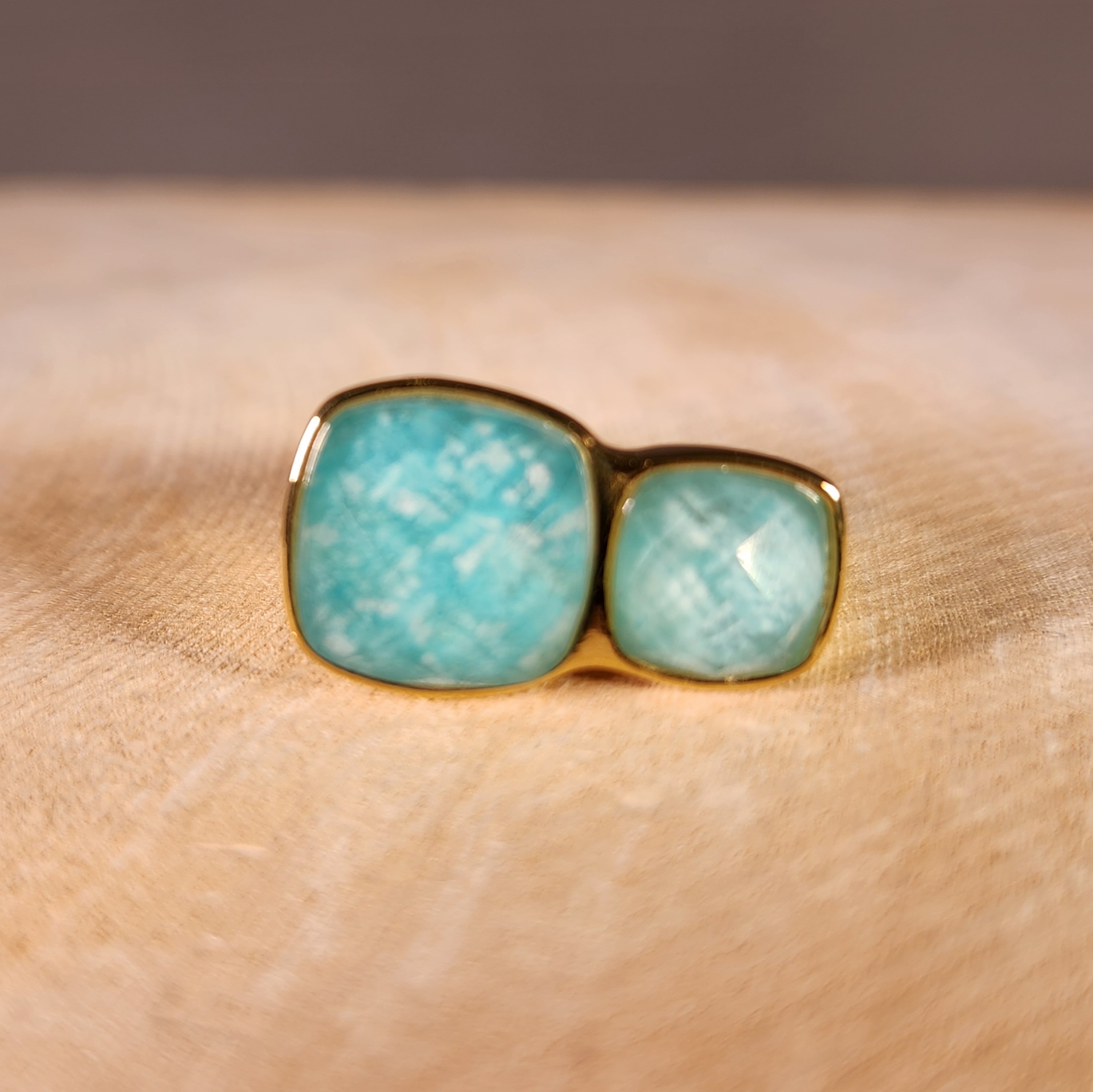 アマゾナイトの石を2石使用しています。 ベースはアマゾナイトで表面は水晶のダブレット状になっています。 通常のアマゾナイトより透明感がある印象です。
