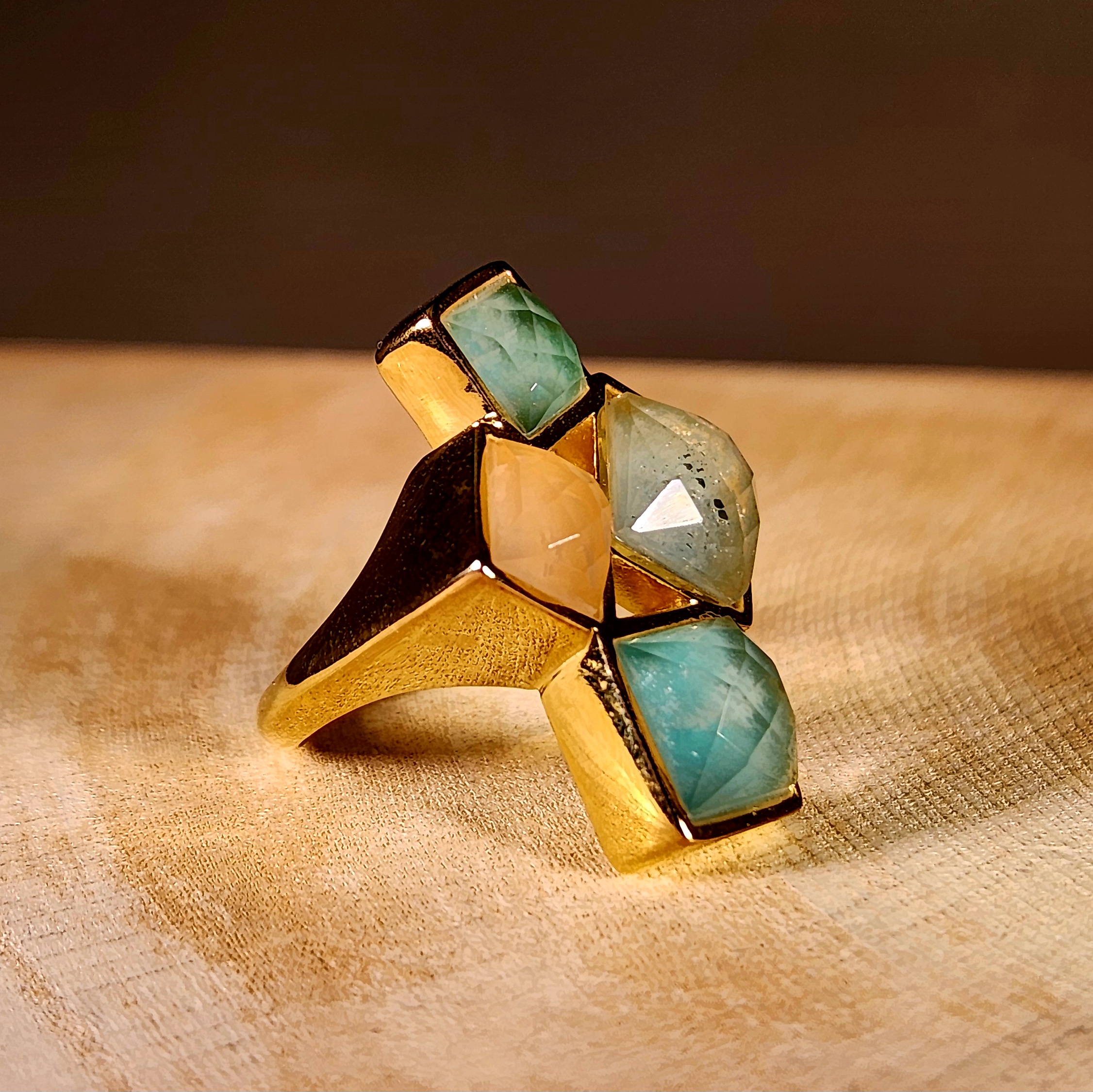 ローズクオーツ、アクアマリン、アマゾナイトを使用したカラフルなリング