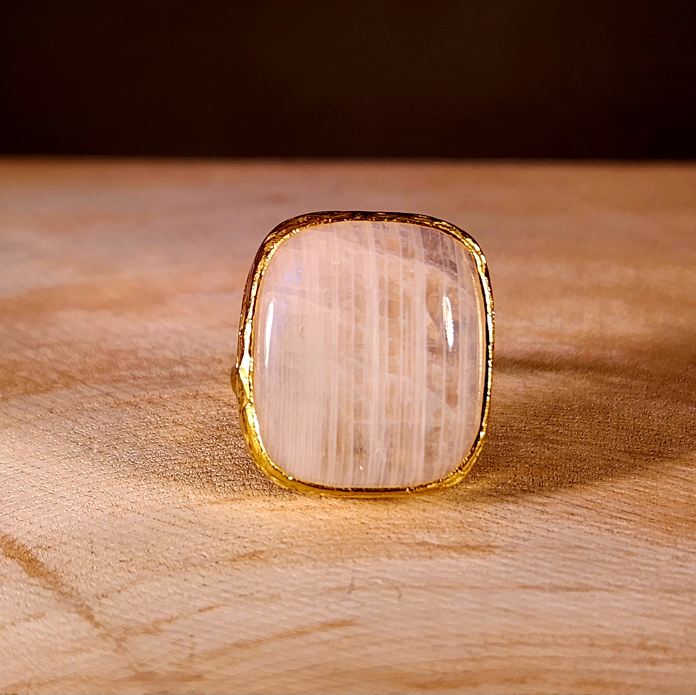 長石と呼ばれる石の種類でサンストーン、アマゾナイト、アンデシン、ラブラドライトなどが仲間になります ムーンストンは直感力を高めストレスを和らげてくれます。恋愛成就の石とも言われています。 ブラス+k22p フリーサイズ