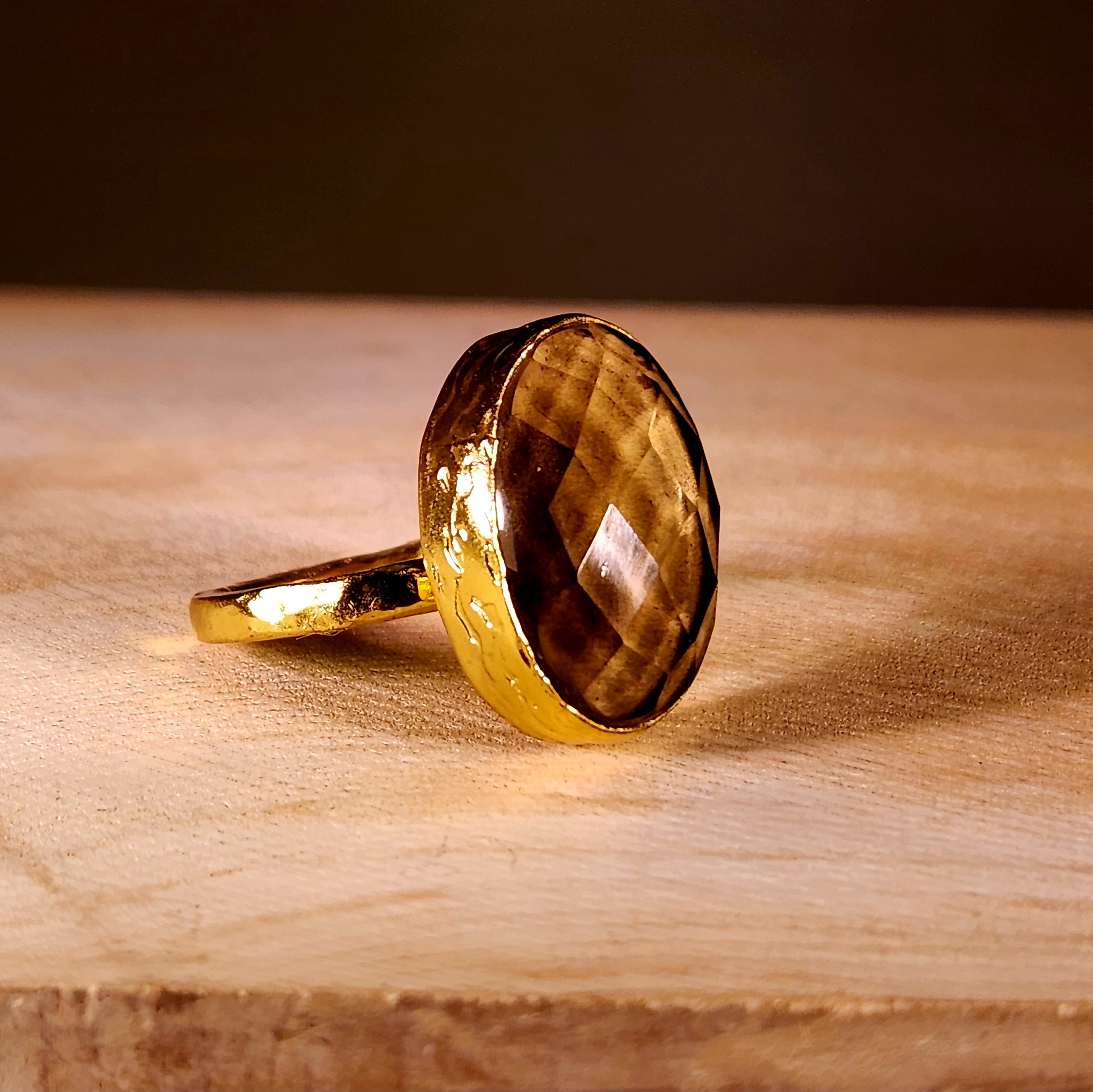 人気のカラーストン、スモーキークオーツどんなファッションにも似合う大人の石です。 水晶系の宝石はローズクオーツ、シトリン、アメジストなどがあります。 心身の安定やストレス緩和そして魔除けの効果があると言われます。 15x20mm フリーサイズ