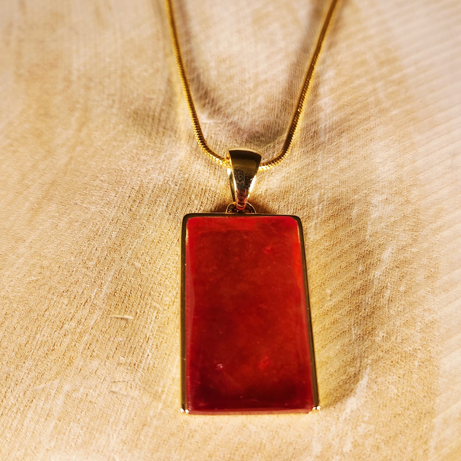 白いドロマイトを赤く処理した石を現地では赤翡翠と呼んでいます。鮮やかな赤が特徴です。