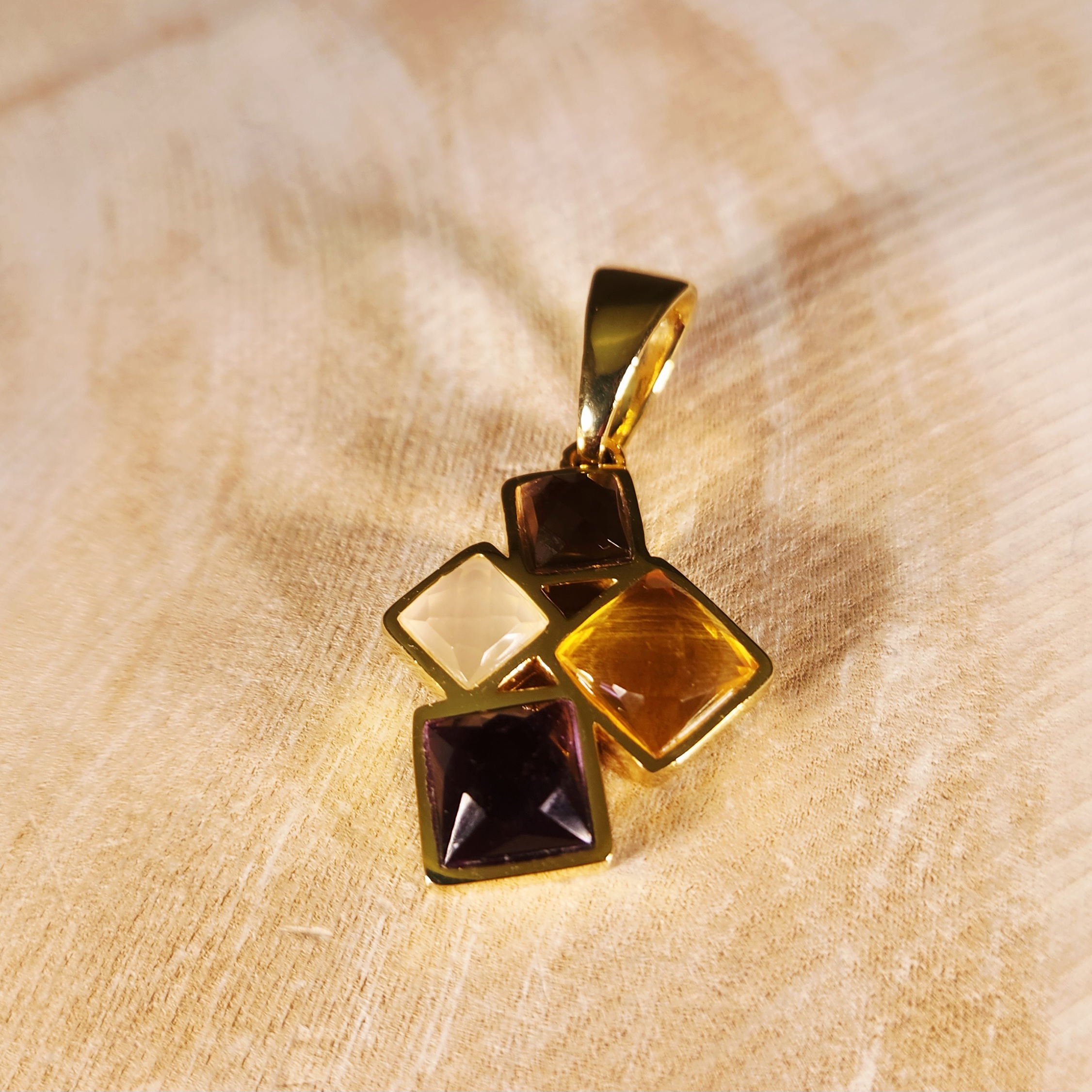 シトリン スモーキークオーツ ミルキークオーツ等を使用したマルチカラーのペンダント