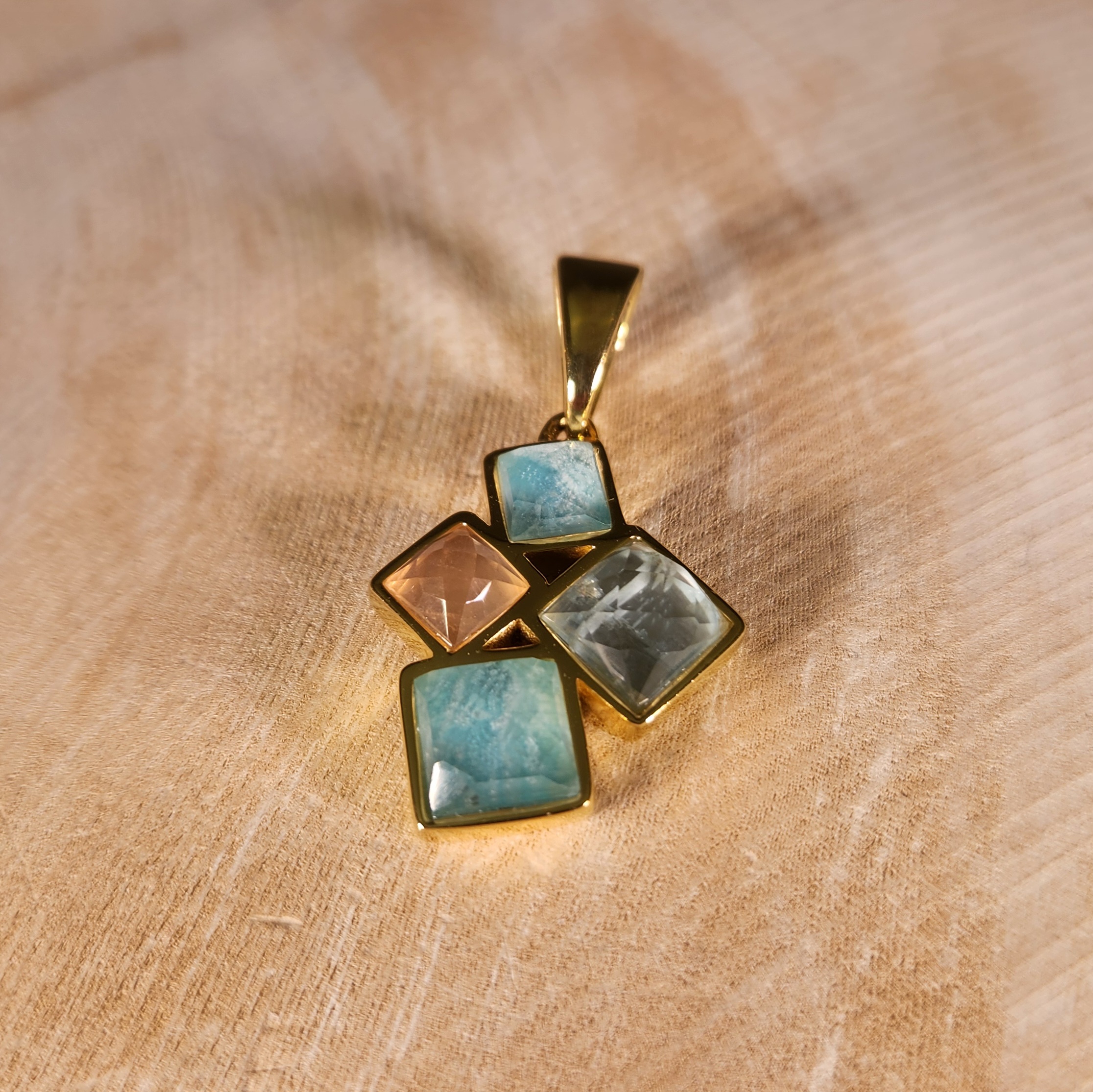 アマゾナイト アクアマリン ローズクオーツ等明るい色で作られたマルチペンダント