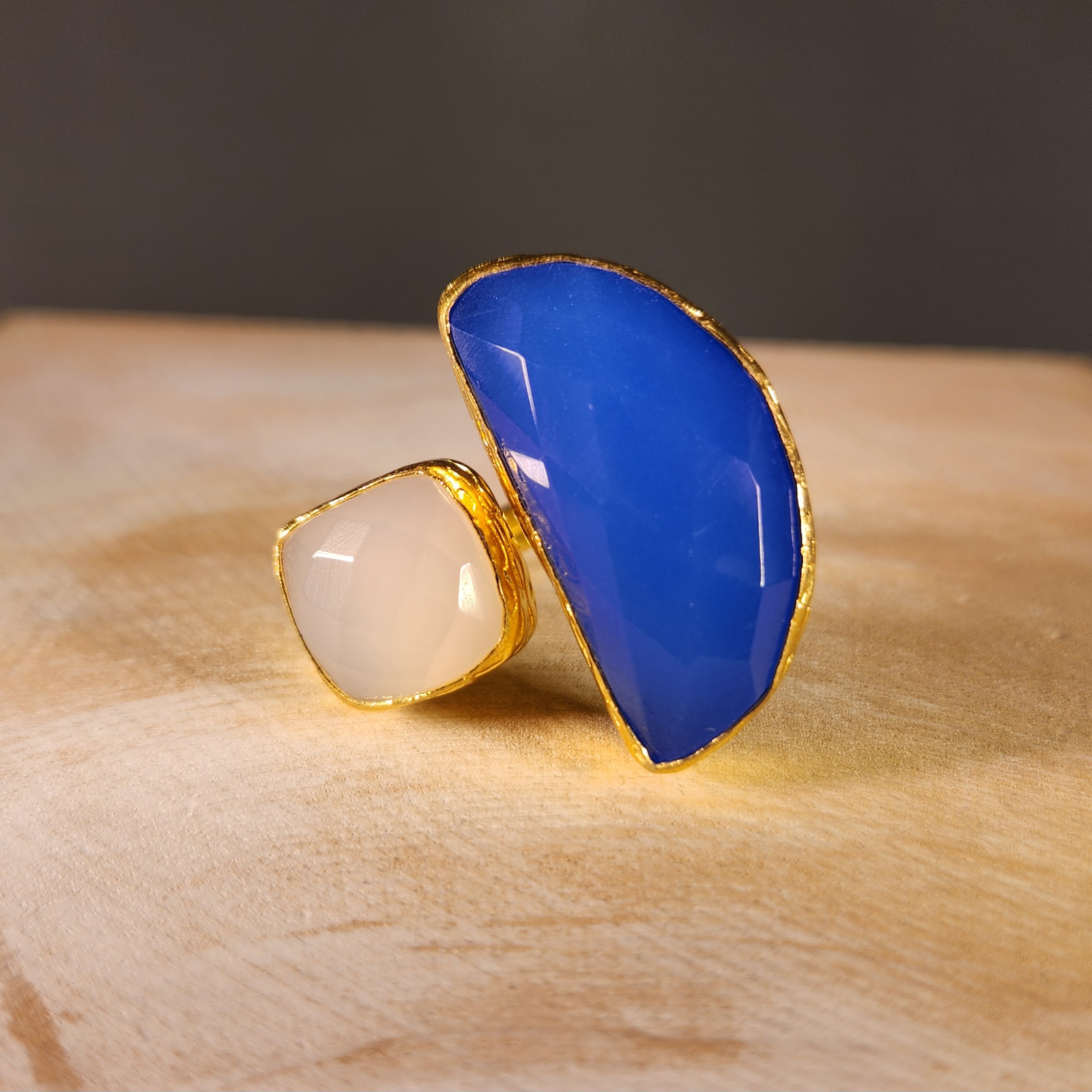 ブルーカルセドニー&ホワイトカルセドニーリング