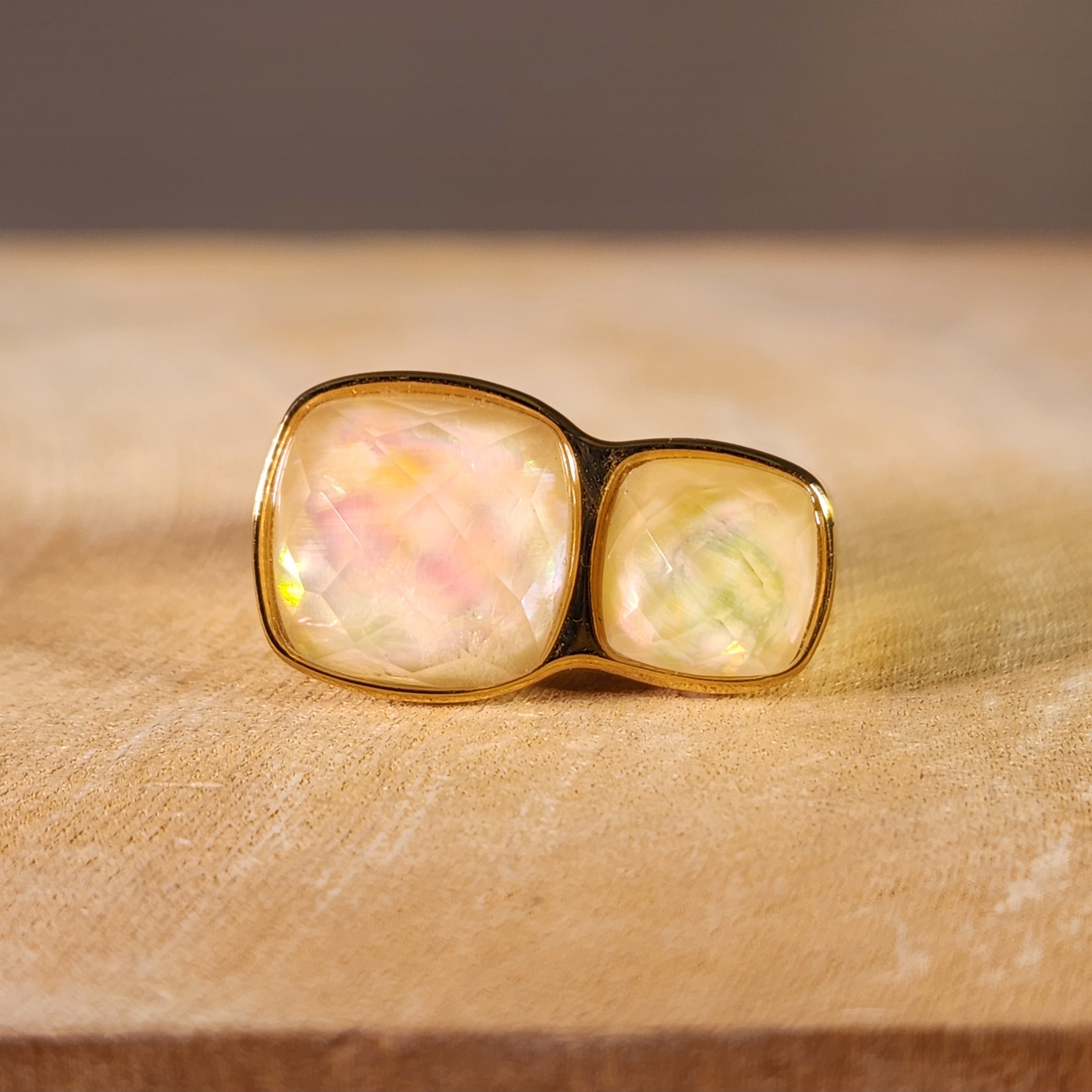 人気の白蝶貝を使用したリング白蝶貝は南洋真珠の母貝の内側をカットしたものです。