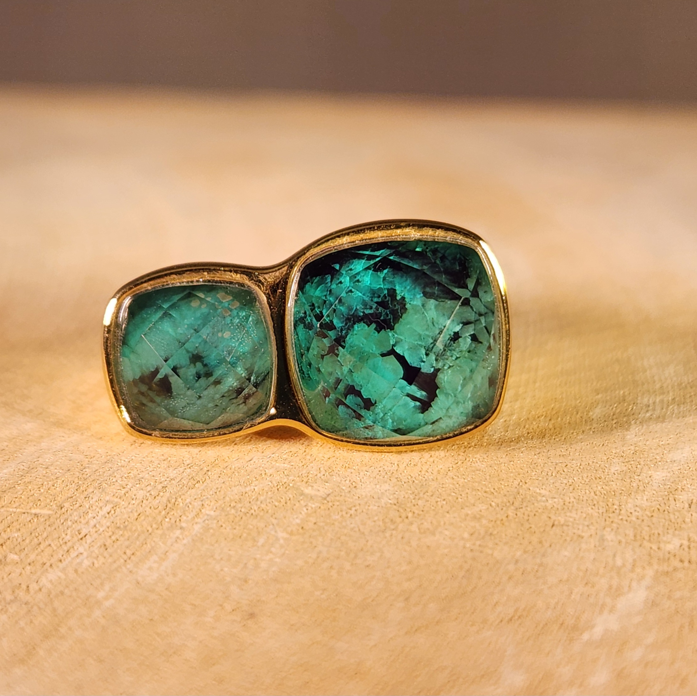 ベースにエメラルド原石、表面には水晶を合わせたダブレットです。