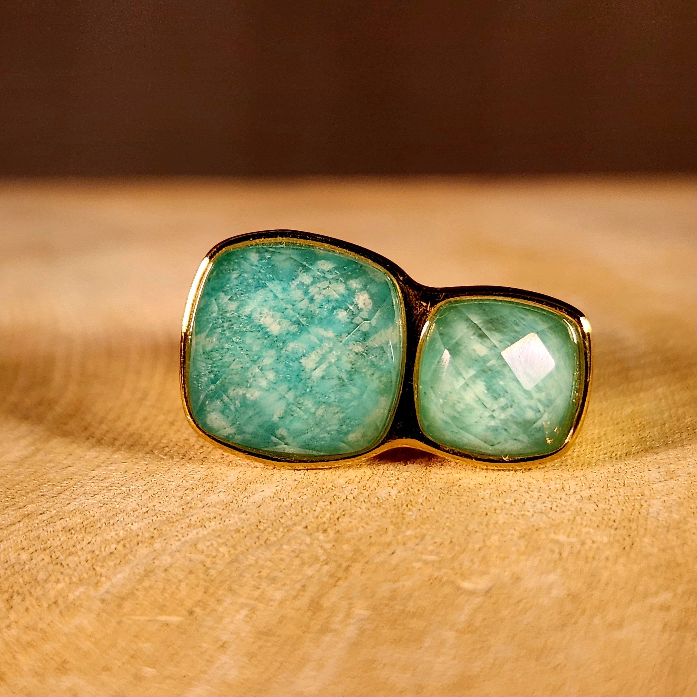 ベースはアマゾナイトで表面は水晶のダブレット状になっています。