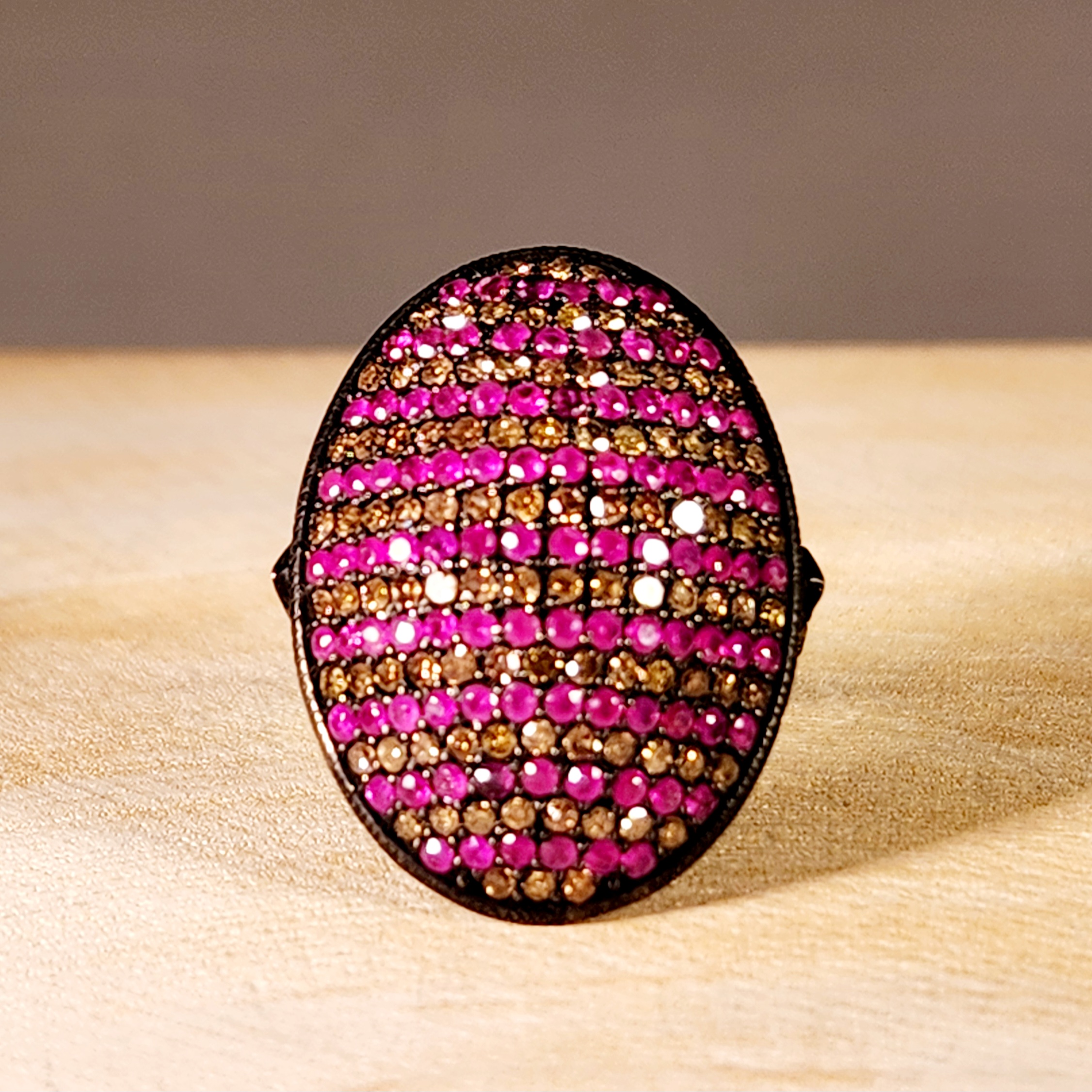綺麗なルビ-とブラウンダイヤメレーで出来た925シルバーリング