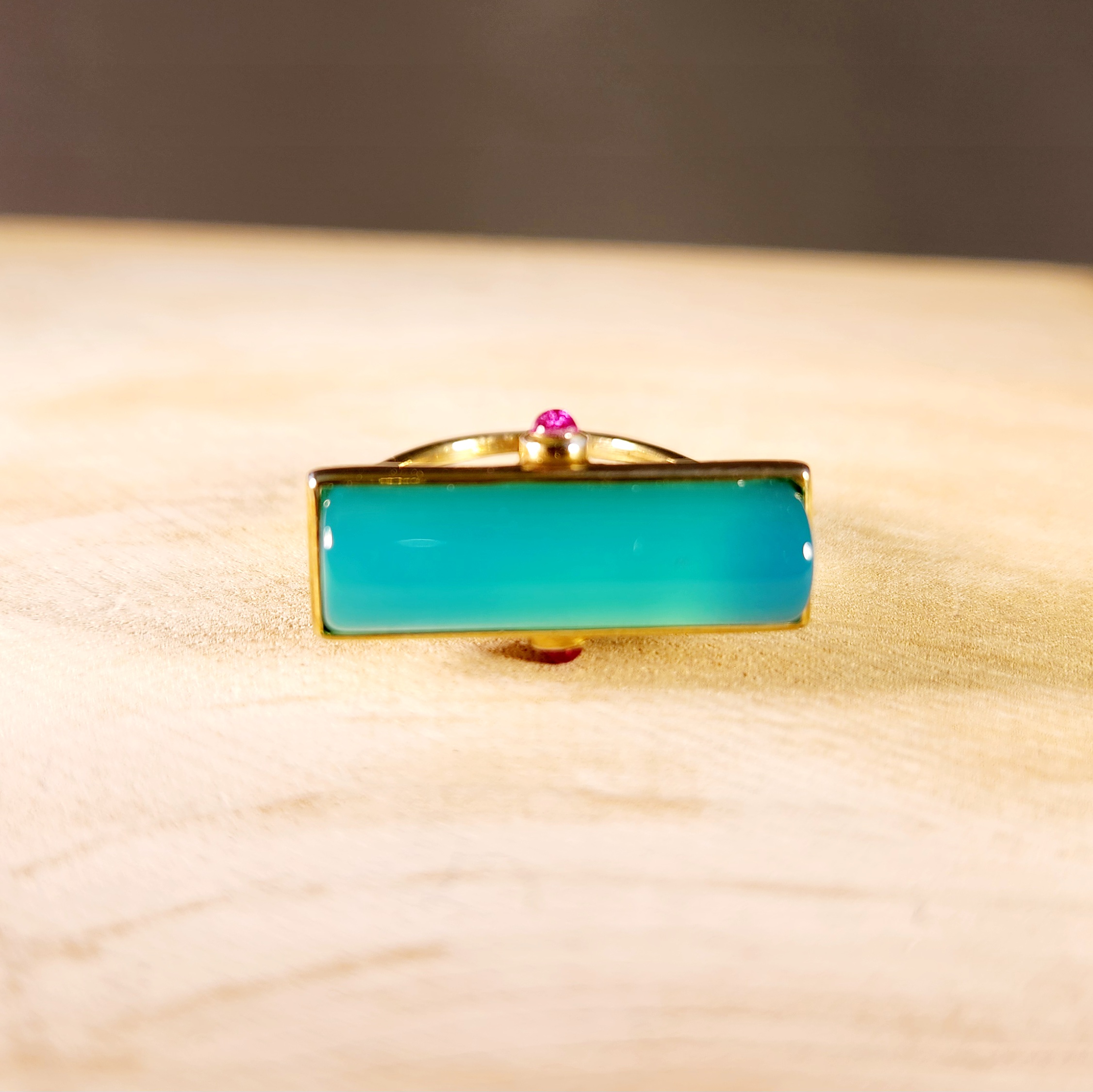 ドイツで特殊加工された現在では入手不可能となったシーブルーカルセドニーを使用したリング